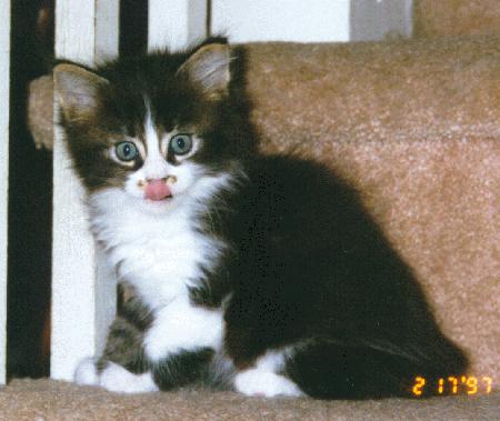 A Brown classic tabby with white male from Nite Staker Buster Brown and Maison Du Chat Maya of Maine Chance